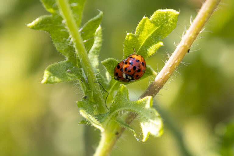 Nun aber zurück zum Naturgarten. Die Wildblumenwiese wird nur einmal im Jahr, im Oktober, gemäht, damit sich die Pflanzen durch Aussämen regenerieren bzw. verbreiten können. Allein ein kleiner und schmaler Wegestreifen rundherum wird mit dem Rasenmäher kurzgehalten.