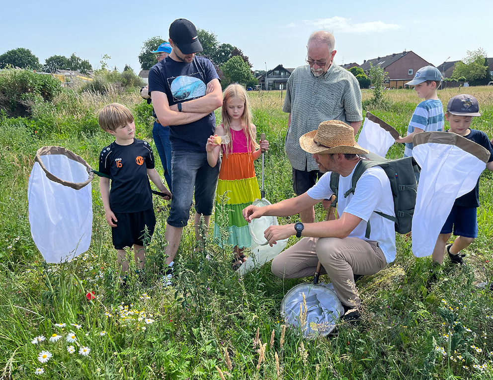 Teilnehmer der Wildbienen-Exkursion mit Christian Venne in Harsewinkel am 14. Juni 2025. Zweiter von rechts: Christian Venne