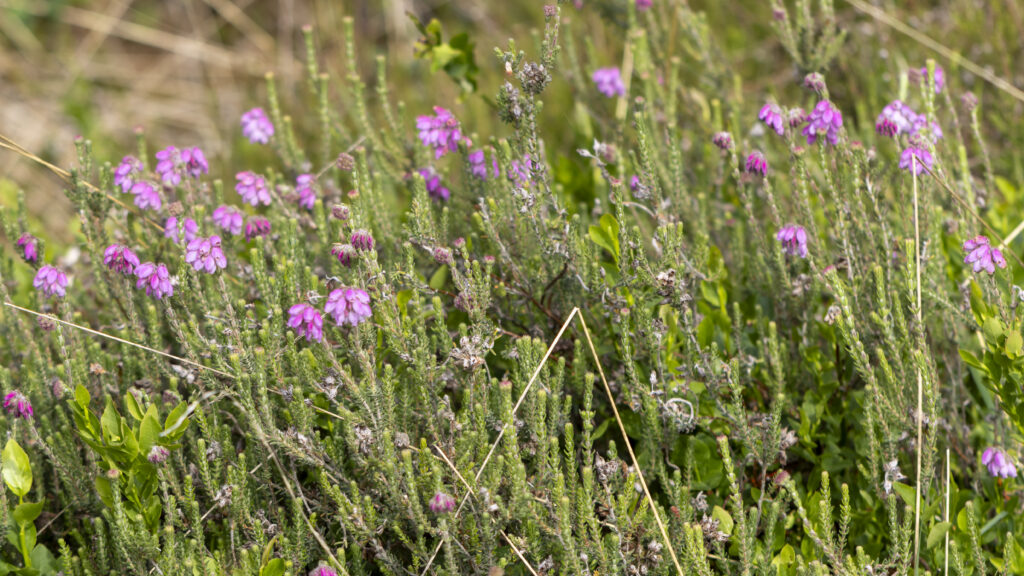 Sehr zu unserer Freude hat sich auf der abgeschobenen Fläche nicht nur die Besenheide sondern auch die Glockenheide eingestellt. Die ersten Exemplare blühen bereits. Foto: Josef Thomalla – 8/2025