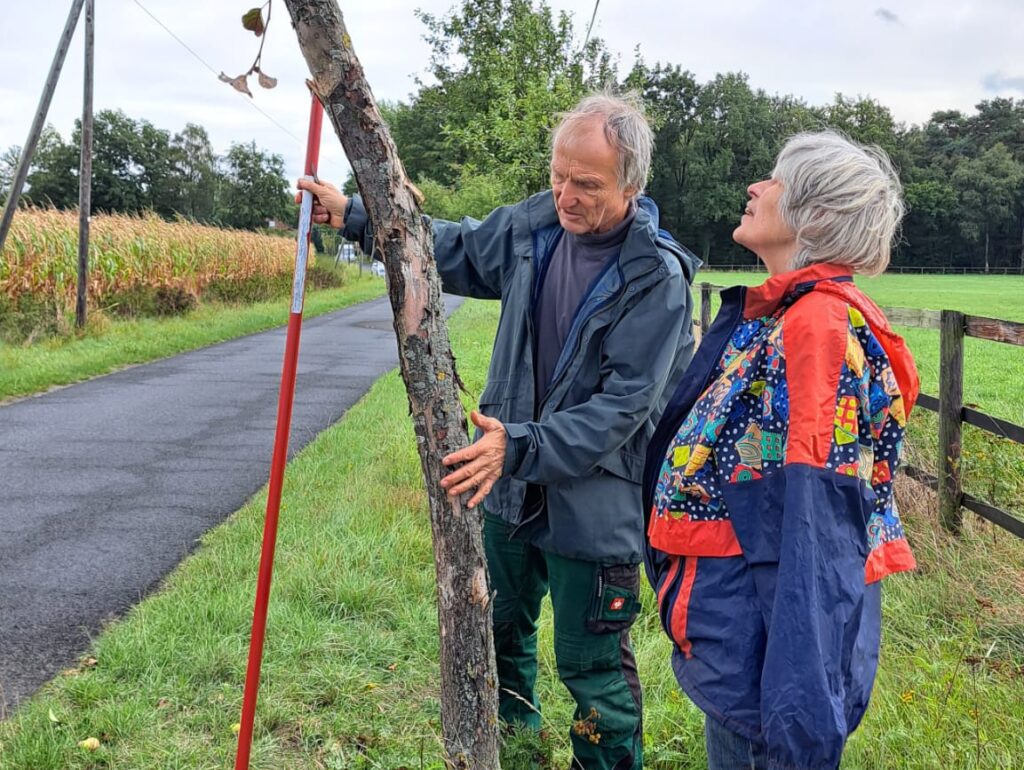 An zwei Tagen im September war der Experte Hans-Joachim Bannier aus Bielefeld, Betreiber des „Obst-Aboretum Olderdissen“, im Stadtgebiet Harsewinkel unterwegs, um die Sorten der älteren städtischen Obstbäume zu bestimmen. Nicht bei allen Bäumen war eine Bestimmung möglich. Klaudia Kretschmer, Akteurin bei der Lokalen Agenda Umwelt, nahm die Daten auf und übertrug sie für jeden Standort und Straßenzug in ihre akribisch vorbereiteten Karten.