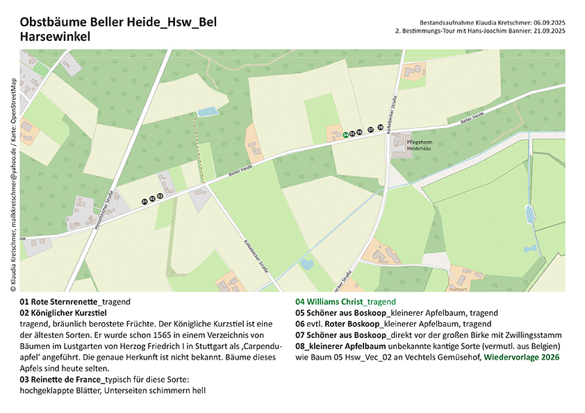 8 öffentliche Obstbäume an der Beller – Heide zwischen Hesselteicher Staße und Kölkebecker Straße