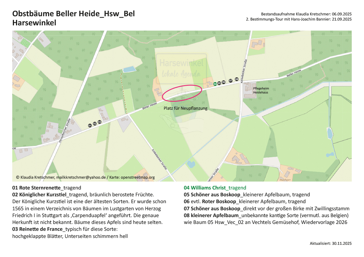 8 öffentliche Obstbäume an der Beller Heide zwischen Hesselteicher Straße und Kölkebecker Straße