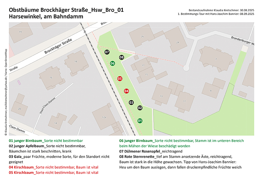 8 öffentliche Obstbäume zwischen Brockhäger Straße und Alte Brockhäger Straße, entlang des Bahndamms.