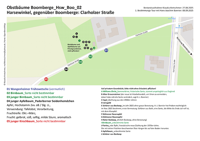 Die von A-L gekennzeichneten Bäume sind Privatbesitz. Nicht ohne Genehmigung pflücken?