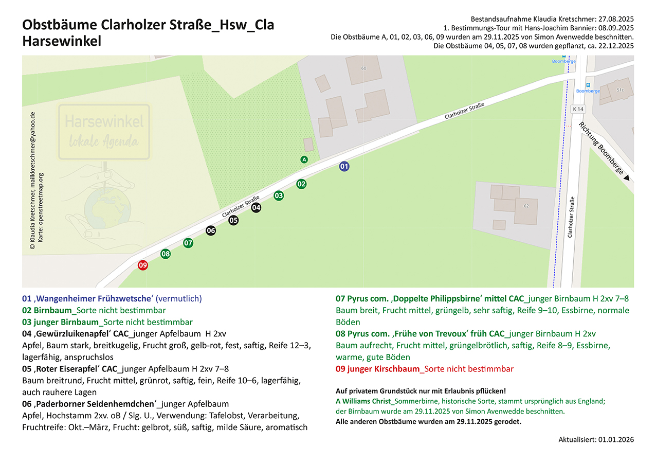 9 öffentliche Obstbäume auf der Südseite der Straße.