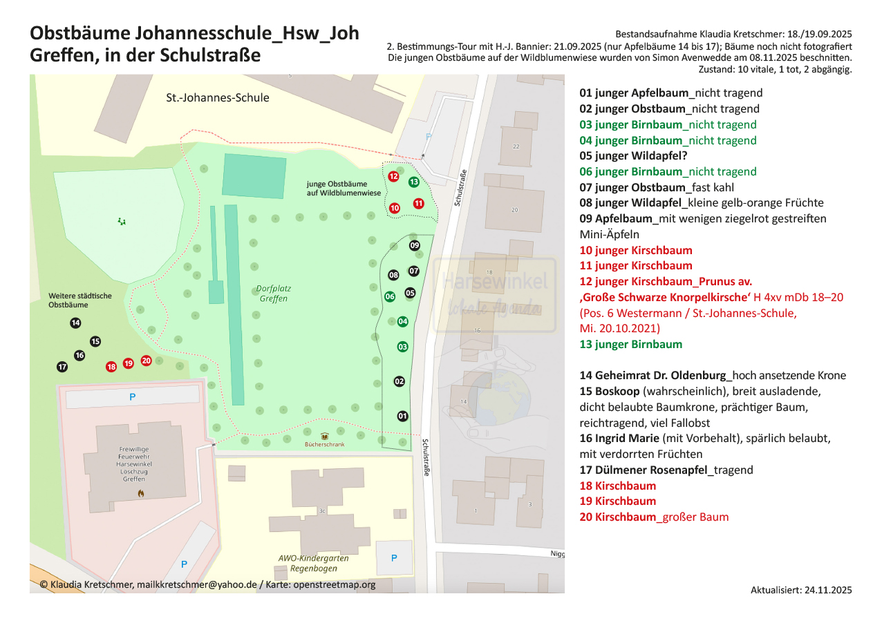 20 öffentliche Obstbäume an der Johannesschule, Greffen.