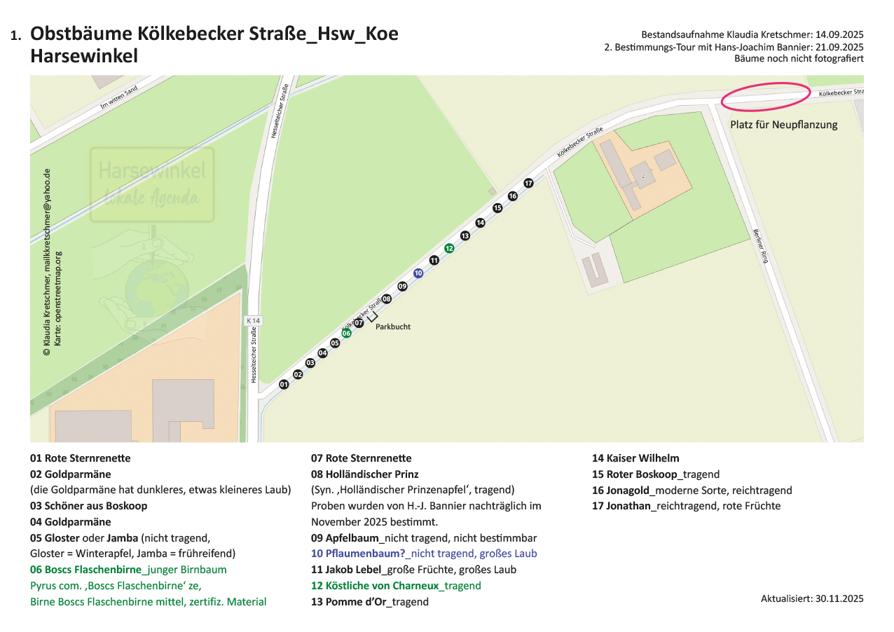 17 öffentliche Obstbäume an der Kölkebecker Straße – Abschnitt 1