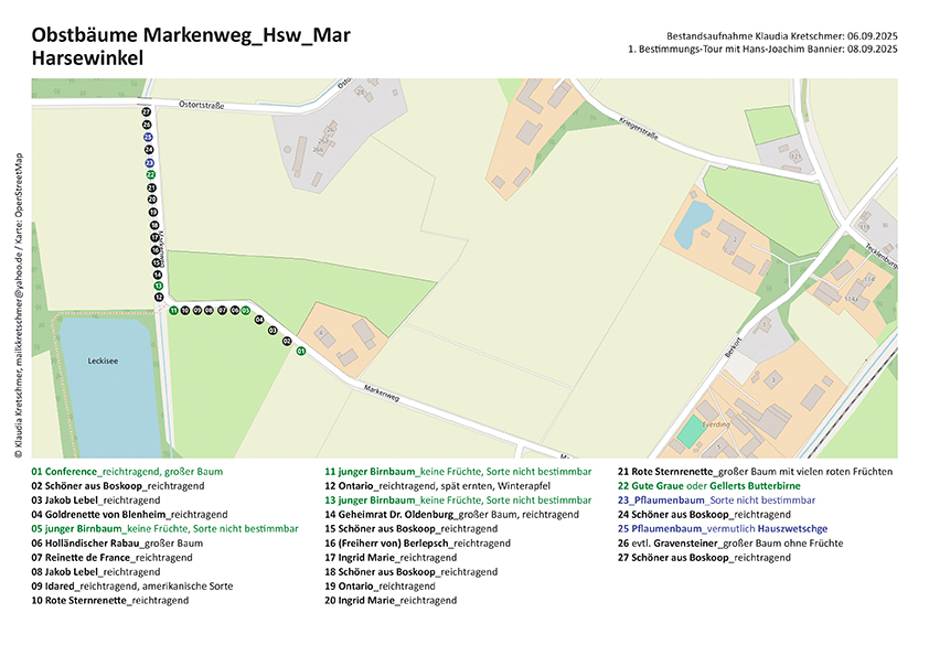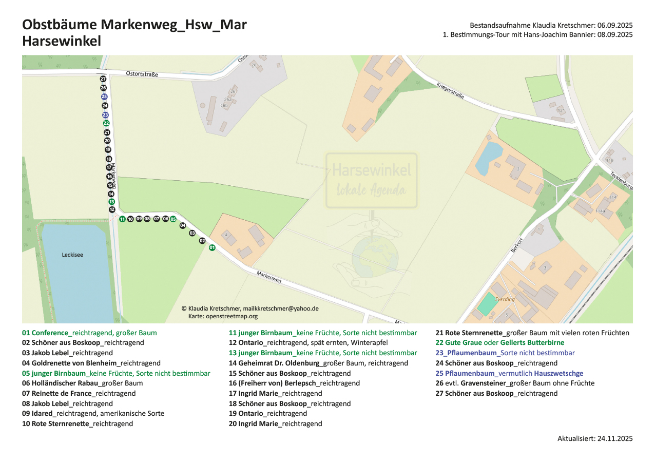 27 öffentliche Obstbäume am MarkenwegGPS-Koordinaten zu Baum 01: 51°58’30.1″N 8°11’35.3″E