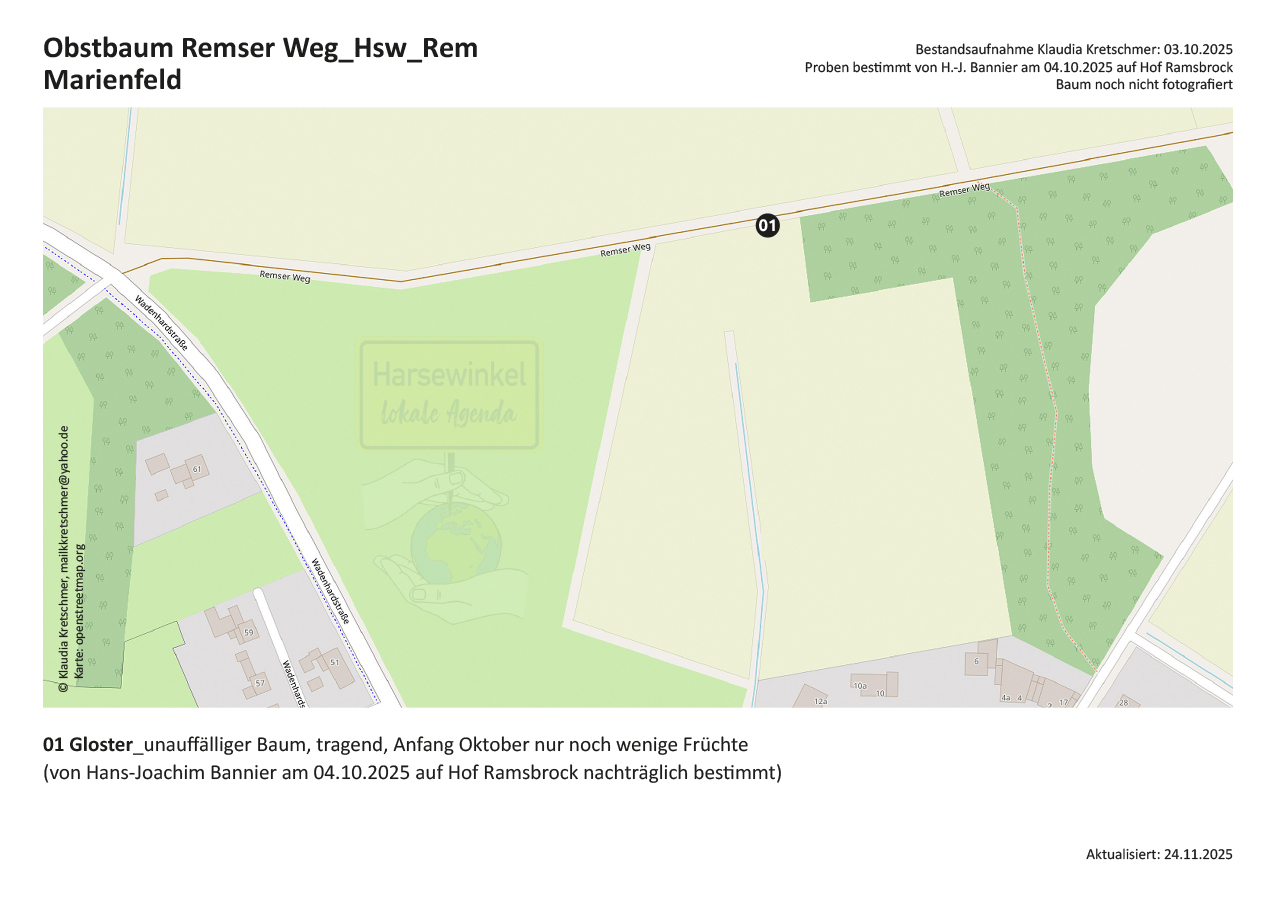 1 öffentlicher Obstbaum am Remser Weg zwischen Wadenhardstraße und Remse