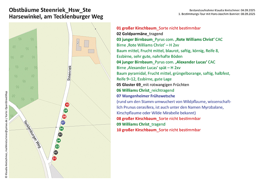 10 öffentliche Obstbäume ab Ecke Tecklenburger WegGPS-Koordinaten : 51°58’59.0″N 8°12’07.7″E