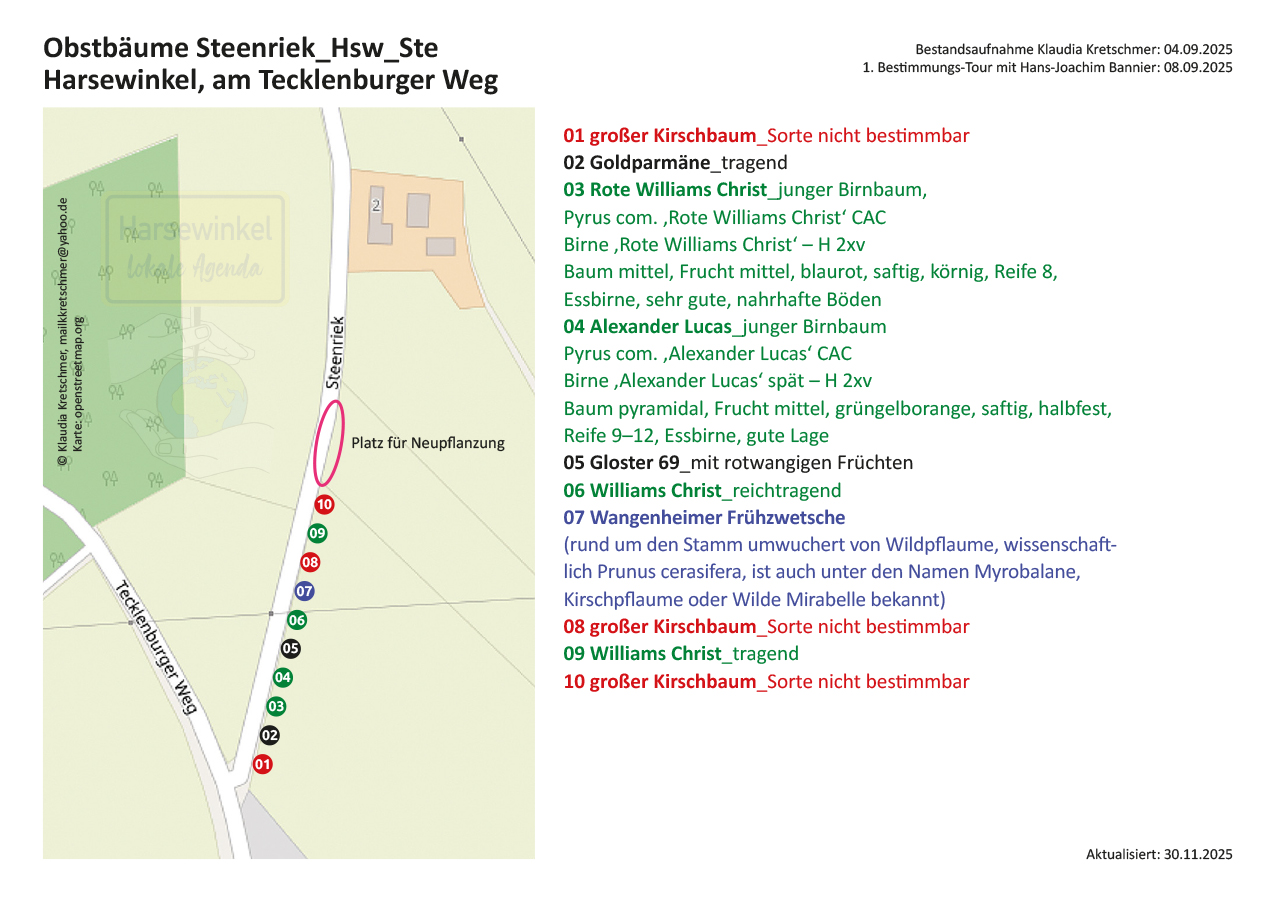 10 öffentliche Obstbäume ab Ecke Tecklenburger WegGPS-Koordinaten: 51°58’59.0″N 8°12’07.7″E
