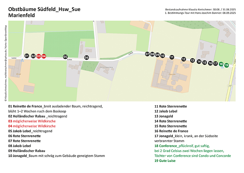 19 öffentliche Obstbäume am Südfeld (von Petermann bis Birwe)GPS-Koordinaten Südfeld: 51°56’20.0″N 8°17’27.0″E