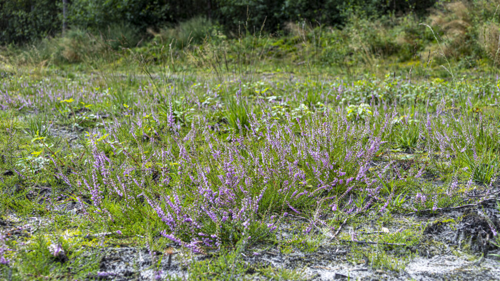 Heideblüte Sommer 2025 – noch mit Pfeiffengras und Baumschößlingen durchsetzt