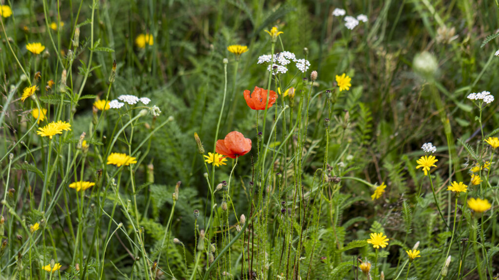 Ca. 1 ha Lebensraum an Grünflächen „zurückholen“. Überackerte und verarmte Flächen in artenreiche Biotope, als Trittsteine für den Erhalt der Artenvielfalt, vornehmlich im Außenbereich entwickeln und aufwerten, als Maßnahme gegen das dramatische Insektensterben. Einsaat mit eigens von Experten empfohlener Saatgutmischung, die an diese Region angepasst ist.