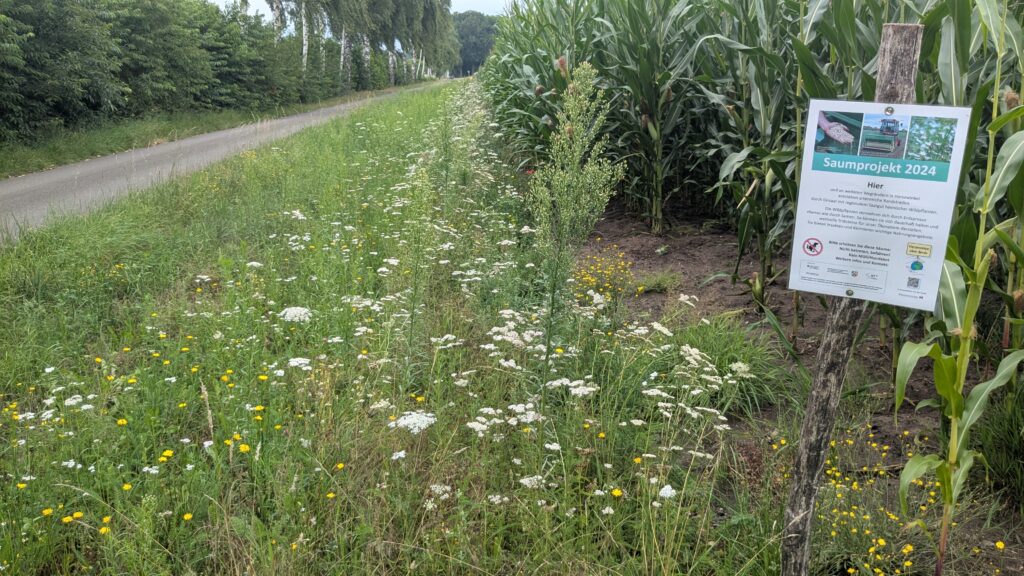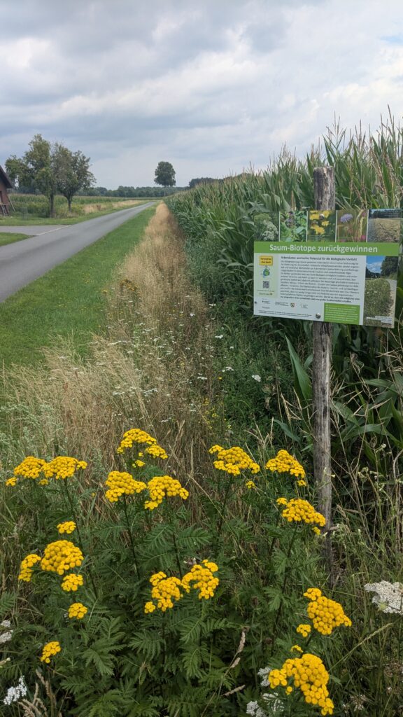 Die in 2024 für die Natur zurückgeholten Säume wurden mit entsprechenden Schildern gekennzeichnet, damit diese als solche erkennbar sind und auch bleiben. Die Entwicklung dieser Säume wird von uns, der Loklen Agenda Umwelt Harsewinkel, begleitet und beobachtet.